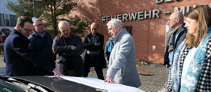 Fuldas Oberbürgermeister übergab sodann das Wort an die LGS-Geschäftsführer Marcus Schlag und Ulrich Schmitt, die den ersten Sitzungstermin des Aufsichtsrates im Jahr 2022 nutzten, um bei einem Rundgang über die neuen Parkbereiche „SonnenGarten“ (Garten am Sprengelsrasen) und „KulturGarten“ (Park überm Engelshaus) über die Baufortschritte zu informieren. So erläuterten sie den Teilnehmern am Treffpunkt Feuerwehrmuseum zunächst anhand von Plänen den Sachstand der Baufortschritte und die Ausstellungsplanung, ehe es mit einem Transfer zum Ausgangspunkt des Rundgangs, dem Park an der Bastion, ging.