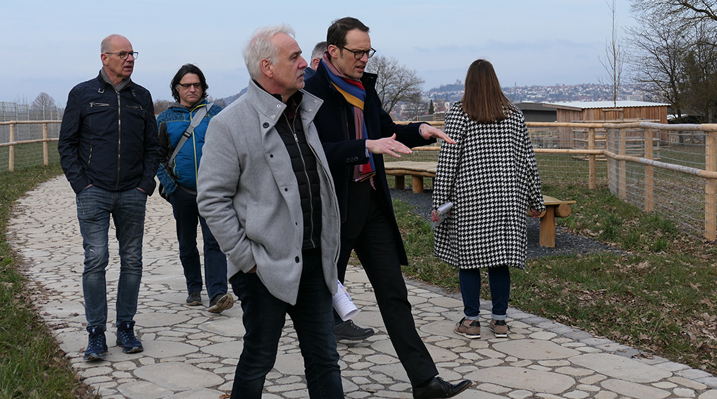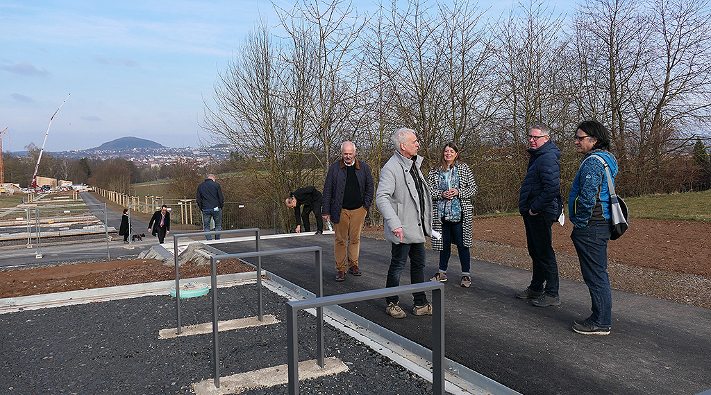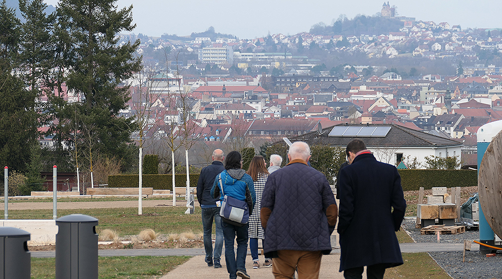 Fragen zu Abwicklungen und Ausschreibungen sowie fachliche Informationen konnten während des Rundgangs direkt vor Ort angesprochen und beantwortet werden – so zum Beispiel zur Parkplatzsituation, dem Überwinden der Höhenunterschiede im KulturGarten oder die Baumsorten, die im dortigen Klimabaumpfad gepflanzt wurden. Begeisterung auf ganzer Linie lösten die großartigen Ausblicke auf die Stadt und die Rhön in den beiden neuen Parks aus. „Es ist einfach toll, die Planungen vor Ort und in natura begutachten zu können, anstatt am grünen Tisch“, zeigten sich die Aufsichtsratsmitglieder begeistert von der Umsetzung.