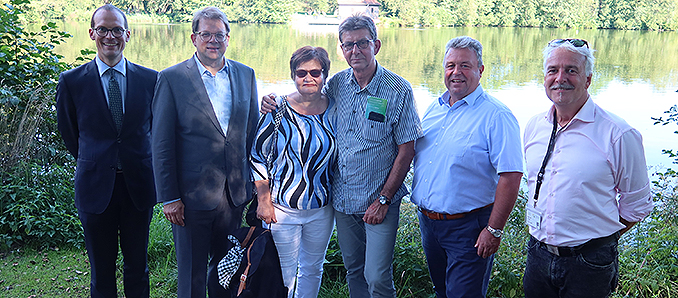 Stadtbaurat Daniel Schreiner, Oberbürgermeister Heiko Wingenfeld, Gisela Lehnert und ihr Ehemann Peter und die LGS-Geschäftsführer und Ulrich Schmitt und Marcus Schlag. (v.l.) Foto: LGS Fulda