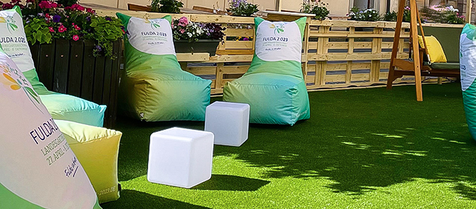 Der StadtGarten 2022 ist Geschichte: Viele Menschen haben die letzten Monate mit großer Freude schöne Stunden am Jesuitenplatz verbracht. Auch, weil sich die eigens im Design der Landesgartenschau Fulda 2.023 gestalteten Sitzsäcke als bequemes Möbel erwiesen haben. Leider fehlen jetzt fünf der beliebten Sitzgelegenheiten. Die LGS startet daher einen Suchaufruf und bittet um Rückgabe.