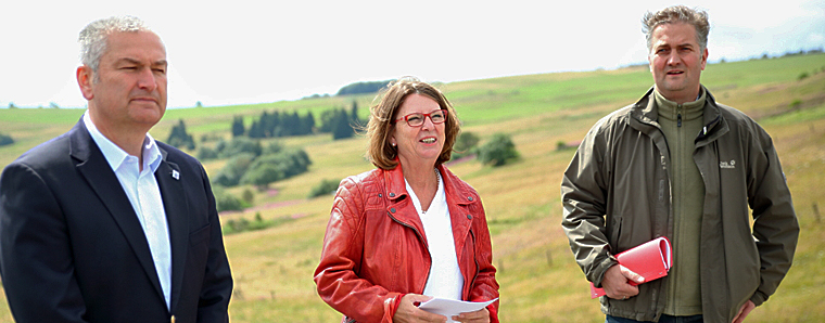 „Einen schönen guten Tag auch von meiner Seite – ich freue mich sehr, dass ich heute mal wieder in der Rhön sein kann – ich genieße diese Aufenthalte in der Rhön, immer sehr. Ich habe mich aber heute nicht nur selbst mitgebracht, sondern vor allem auch eine gute Botschaft“, so die Begrüßungsworte von Seiten der Ministerin. „Ich freue mich, dass auch der Landtagsabgeordnete heute hier ist, diese Anwesenheit mir zeigt, dass auch die Politik – sozusagen insgesamt heute hier schlagkräftig vertreten ist. Wir haben von der Europäischen Kommission für das LIFE-Projekt ‚Hessische Rhön – Berggrünland, Hutungen und ihre Vögel‘ in Hessen den Zuschlag bekommen. Es hat zwar von der Antragstellung oder von den Vorbereitungen der Antragsstellung, bis zum Zuschlag, etwas gedauert, aber am 01. Oktober diesen Jahres kann es dann endlich losgehen“, so die Umweltministerin weiter, die anfügte: „Die Rhön ist ein wahres Juwel im hessischen Naturschutz; Hier wachsen nicht nur seltene Pflanzen, sondern haben hier auch viele Vogelarten ihr Zuhause – zudem ist die Rhön – das einzige Biosphärenreservat in Hessen.“