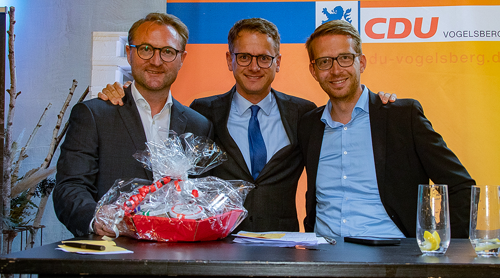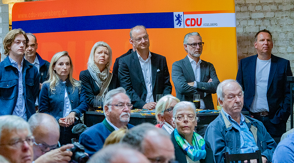 Wirtschaft funktioniert anders. Wir müssen uns Ziele setzen und dann der Wirtschaft die Zielerreichung und die Umsetzung überlassen". Ansonsten riskiere Deutschland, dass noch mehr Forschung und Wissenschaft ins Ausland wechsele. Im Hinblick auf den Flüchtlingsstrom machte der Generalsekretär deutlich, dass die CDU der Bundesregierung nun die Hand ausgestreckt habe, um gemeinsam Lösungen zu finden. Dies sei dringend notwendig, um insbesondere die kommunale Ebene zu entlasten. Lob hielt Linnemann auch für die Wahlkämpfer im Vogelsberg parat: „Mit Michael Ruhl und Jens Mischak haben sie zwei vor Ort, die tatsächlich auch einen beruflichen Hintergrund haben, mit dem sie nicht auf die Politik angewiesen sind. Auch wenn sie es nicht glauben, aber die beiden haben eine richtige Ausbildung gemacht", erklärte er unter dem Schmunzeln und Beifall der anwesenden Zuhörer. Michael Ruhl, Landtagskandidat und amtierenden Abgeordneter im Wahlkreis, nutzte sodann auch die Gelegenheit, um fünf Tage vor dem Sonntag nochmals eindringlich auf die Wichtigkeit der Stimmabgaben hinzuweisen. „Auch wenn die Umfragen derzeit gut ausschauen, die Ampel-Parteien haben immer noch rund 40 Prozent. Und wer sicher gehen will, dass dieses Modell nicht nach Hessen kommt, der muss am Sonntag der CDU das Vertrauen schenken".
