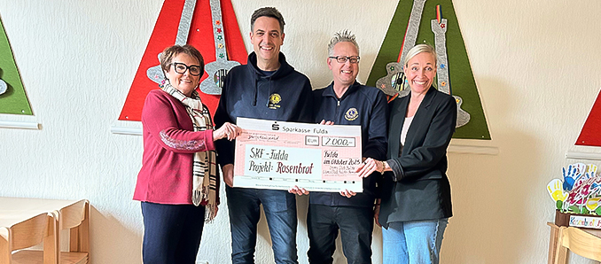 Die Lions Clubs Fulda und Fulda-Bonifatius haben Ende Oktober dem Sozialdienst katholischer Frauen (SkF) Fulda eine Spende von 2.000 Euro für das Projekt „Rosenbrot“ überreicht. Die Geschäftsführerin des SkF, Sarah Muth, sowie die Vereinsvorsitzende Ursula Schmitt nahmen den Scheck entgegen. Besonders freuten sich die Kinder der pädagogischen Nachmittagsbetreuung in der Fuldaer Innenstadt, die bereits seit vielen Jahren von den Lions unterstützt wird.