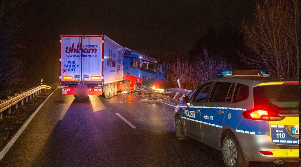 Schwerer Glätteunfall in der Nacht zum Mittwoch auf der B62 im Vogelsbergkreis. In der Nähe von Alsfeld ist ein Lkw-Fahrer von der spiegelglatten Fahrbahn abgekommen mit seinem Fahrzeug in die Leitplanke geprallt. Der 49-Jährige hatte Glück im Unglück und wurde nur leicht verletzt; der Lastwagen wurde jedoch erheblich beschädigt. Das Fahrzeug blockierte die komplette Fahrbahn. Aufwändige Bergungsarbeiten wurden nötig; die Bundesstraße musste für mehrere Stunden voll gesperrt werden. Da keine keine Betriebsstoffe ausgelaufen waren, wurde keine Feuerwehr zum Abbindung benötigt. Der Gesamtschaden dürfte sich nach ersten Schätzungen um die 50.000 Euro belaufen. +++