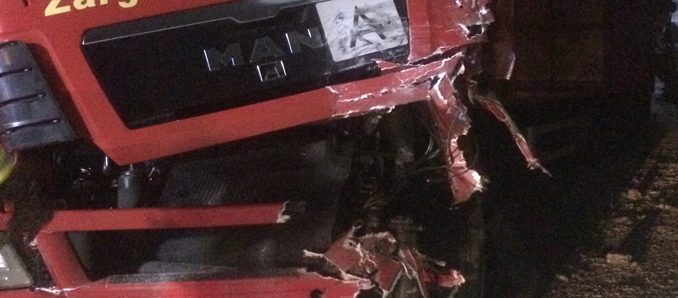 Alsfeld. Am frühen Dienstagmorgen ereignete sich gegen 02.00 Uhr auf der B62 zwischen Alsfeld Angenrod und Kirtorf Ober Gleen ein Verkehrsunfall an dem drei Lkw beteiligt waren. Bei dem Verkehrsunfall wurden zwei Personen leicht verletzt. Nach erster Einschätzung entstand Sachschaden in Höhe von ca. 120.000 Euro. Zum Unfallzeitpunkt herrschten rund um Alsfeld winterliche Straßenverhältnisse. Zunächst befuhren zwei Lkw hintereinander die B62 von Alsfeld in Richtung Kirtorf. Beide konnten die dortige Steigungsstrecke bedingt durch Schnee- und Eisglätte nicht passieren. Die Fahrzeuge hielten an. Der dritte Lkw war in entgegengesetzter Richtung unterwegs. Auf der Gefällstrecke geriet dieser ins Schleudern, geriet auf den Gegenverkehrsfahrstreifen und kollidierte dort frontal mit dem ersten glättebedingt stehenden Lkw. Durch die Wucht des Aufpralls wurde dieses Fahrzeug gegen den dahinter stehenden Lkw geschoben. Die Insassen von zwei der beteiligten Lkw wurden leicht verletzt. Der Fahrer des ersten stehenden Lkw konnte sich vor dem Aufprall durch einen Sprung aus dem Führerhaus, bei dem er sich leicht verletzte, in Sicherheit bringen. Durch den Verkehrsunfall ist die B 62 seit dem Unfall blockiert und voll gesperrt. Die Bergungsarbeiten sind derzeit im Gange und dauern voraussichtlich noch bis in die späten Morgenstunden. +++ fuldainfo