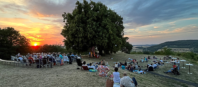 Am Samstag erlebten zahlreiche Besucher der Akademie Burg Fürsteneck einen Abend voller Romantik, Poesie und Erotik. Bei warmen Temperaturen verzauberten Barbara und Christoph Gottwald vom „Theater mittendrin“ ihr Publikum und Sabine Frank vom Sternenpark Rhön entführte unterhaltsam und lehrreich zugleich in eine sternenklare Nacht.