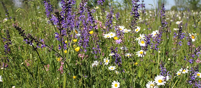 Gebietsheimische Wildpflanzen in einer hohen Artenvielfalt spielen dabei eine ganz besondere Rolle und haben eine Schlüsselfunktion. Wissenschaftliche Untersuchungen zeigen, dass in artenreichen Wiesen sowie halboffenen, beweideten Landschaften besonders viel Kohlenstoff im Boden gespeichert wird. Zudem sind artenreiche heimische Blumenwiesen besonders resilient gegenüber Trockenperioden. Hier heißt das Motto: Vielfalt schafft Stabilität.