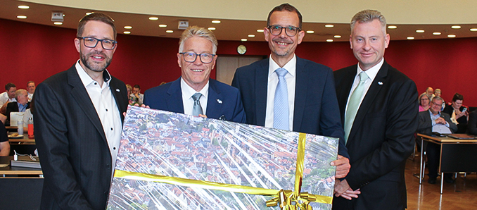 Landrat Thorsten Stolz, Kreisbeigeordneter Winfried Ottmann, Kreistagsvorsitzender Carsten Ullrich und Erster Kreisbeigeordneter Andreas Hofmann.