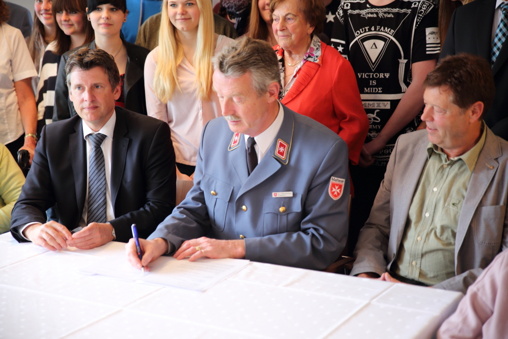 Hilders. Am heutigen Montag erfolgte in der Cafeteria des DRK-Seniorenzentrums St. Kilian, in der Gemeinde Hilders, im Landkreis Fulda, die offizielle Projektetablierung zwischen dem Malteser Schülerbesuchsdienst der Mittelpunktschule „Hohe Rhön“, dem Deutschen Roten Kreuz und dem Malteser Hilfsdienst, einem Kooperationsprojekt, welches durch Annika Jost, Religionslehrerin an der Mittelpunktschule Hilders, im Kontext ihrer Unterrichtsdidaktik des Themas „Nächstenliebe“ ins Leben gerufen wurde.