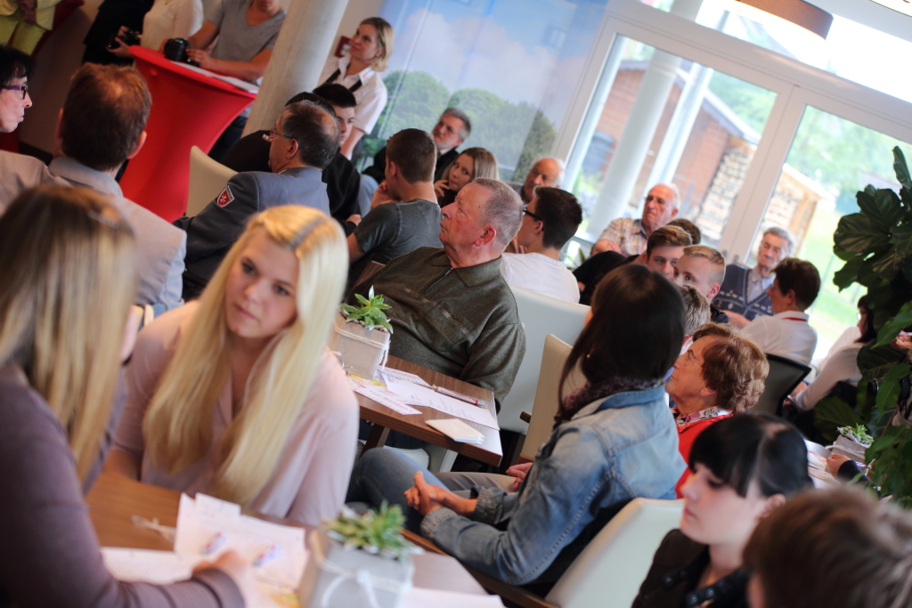 16 Schülerinnen und Schüler der 9. Klasse der Hilderser Mittelpunktschule „Hohe Rhön“ nehmen seit einem halben Jahr an einem unkonventionellen Religionsunterricht teil. Zusammen mit ihrer Lehrerin Annika Jost, praktizieren die Schülerinnen und Schüler ihr Unterrichtsthema „Nächstenliebe“ aktiv mit den Bewohnerinnen und Bewohnern des DRK-Seniorenzentrums St. Kilian in Hilders. Der Botschaft Gottes folgen, sie zu leben sowie nach ihr handeln, waren das Credo des unter dem Motto „Kontakte knüpfen- über Generationen hinweg“ stehenden Projektes, diesem die Mittelpunktschüler seit einigen Monaten gerecht werden. Auf diesen ehrenamtlichen Dienst wurden die Jugendlichen von dem Malteser Hilfsdienst, in acht Unterrichtseinheiten, ausgebildet und auch während des Projektes begleitet. Durch das Projekt bekommen die jungen Menschen nicht nur einen Einblick in die Altenpflege, sondern daneben auch die Möglichkeit, mit den Senioren aktiv in Kontakt zu treten, eine für beide Generationen wertvolle Erfahrung weiß auch DRK-Präsident des Kreisverbandes Fulda Prof. Dr. med. Martin H. Hessmann, der heutige Veranstaltung eröffnete: „Ich finde den Malteser Schülerbesuchsdienst ein sehr lohnendes Projekt. Ich freue mich, dass wir es heute offiziell etablieren können. Wir wünschen dem gesamten Projekt, insbesondere aber denjenigen, die es mit Leben füllen: Den Schülerinnen und Schülern, den Heimbewohnerinnen und Heimbewohnern sowie den Mitarbeiterinnen und Mitarbeitern des Deutschen Roten Kreuzes und des Malteser Hilfsdienstes, viel Erfolg und weiterhin alles Gute.“