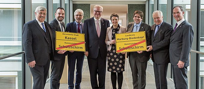 Kassels Regierungspräsident Dr. Walter Lübcke konnte Kassel als erster Stadt den Entlassungsbescheid ausstellen: „Dass die Stadt Kassel so schnell aus dem Schutzschirm entlassen werden kann, hat viel damit zu tun, dass sich die Region wirtschaftlich so hervorragend entwickelt. Und daran arbeiten wir in Nordhessen alle gemeinsam seit vielen Jahren. Deshalb war es die kurz-, mittel- und langfristig richtige Entscheidung der Landesregierung, die Stadt Kassel im Rahmen der Schutzschirmvereinbarung mit der stattlichen Summe von 260 Millionen Euro auszustatten.“