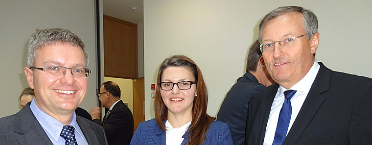 Prof. Dr. Felix Ecker vom Fachbereich Lebensmitteltechnologie, Preisträgerin Simone Sohnle und der Vorstandsvorsitzende der Sparkasse Fulda, Alois Früchtl. (v.l.)