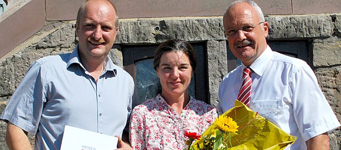 Poppenhausen/Abtsroda. Im Rahmen des Festaktes zum Jubiläum 850 Jahre Abtsroda wurde der Ehrenbrief des Landes Hessen an Matthias Müller verliehen. Bürgermeister Manfred Helfrich, der im Auftrag des Hessischen Ministerpräsidenten Volker Bouffier und in Vertretung von Landrat Bernd Woide in Anwesenheit des Ersten Kreisbeigeordneten Frederik Schmitt die Auszeichnung vornahm, erläuterte die Verdienste des zu Ehrenden: Der Handwerksmeister der Deutschen Bahn, Matthias Müller (47), sei ein positives Beispiel für ehrenamtliches Engagement und ein Vorbild für die Bürgergesellschaft. Mit der Verleihung des Landesehrenbriefes soll die langjährige, engagierte, gemeinwohlorientierte Tätigkeit von Matthias Müller, ein kräftiger Motor im Ortsteil Abtsroda, angemessen gewürdigt werden. Sein herausragendes Engagement hat er insbesondere in den Bereichen Kommunalpolitik und bei der Feuerwehr geleistet.