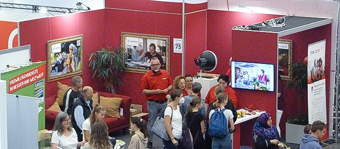„Die Bandbreite derjenigen, die sich mit uns unterhalten wollten, war sehr groß. Einige hatten schon sehr gezielte Nachfragen, andere waren noch völlig ohne Vorwissen und einige haben schon sehr starkes Interesse an einer Ausbildung bei uns“, erzählt Hartmut A. Schwab, Berufspädagoge der me:care. Sein Kollege Mike Mann, Leiter des Mediana Wohnstifts und des Mediana Pflegestifts, teilt diese Einschätzung: „Wir haben nicht nur Gespräche mit jungen Menschen geführt, sondern viele Anfragen von begleitenden Angehörigen beantwortet, die sich für eine Tätigkeit in den Bereichen soziale Betreuung oder hauswirtschaftliche Unterstützung interessieren.“
