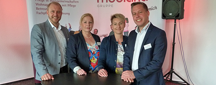 Mediana-Geschäftsführer Bastian Hans, Barbara Burkhardt (Mitarbeiterin in der Mediana Akademie), Patricia Bott (Leiterin der Mediana Akademie) und Mediana-Geschäftsführer Thorsten Roch. (v.l.)