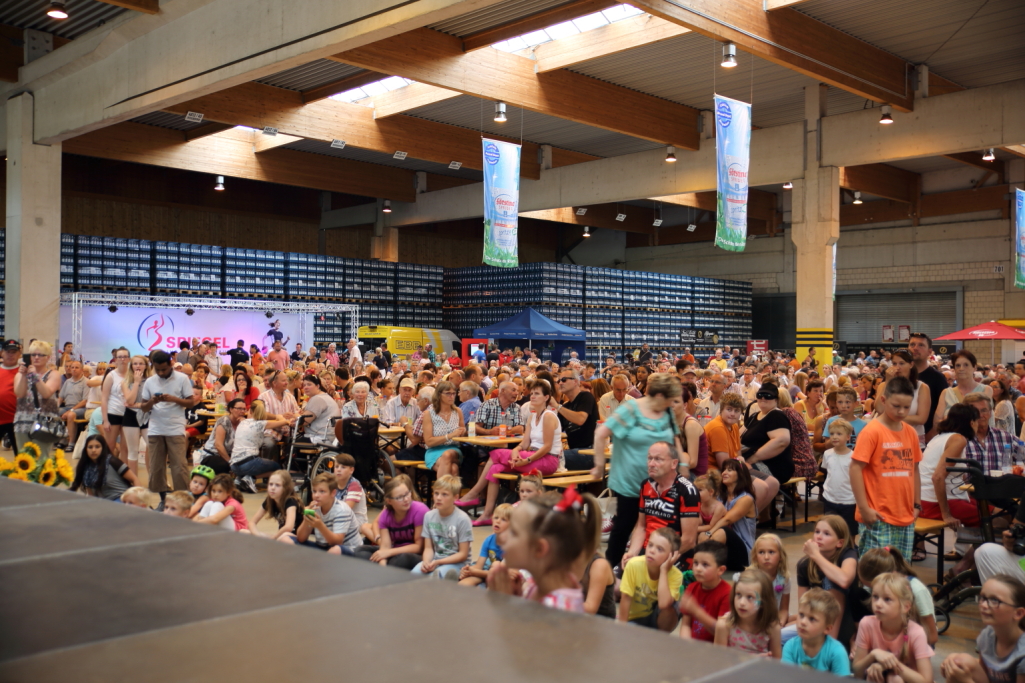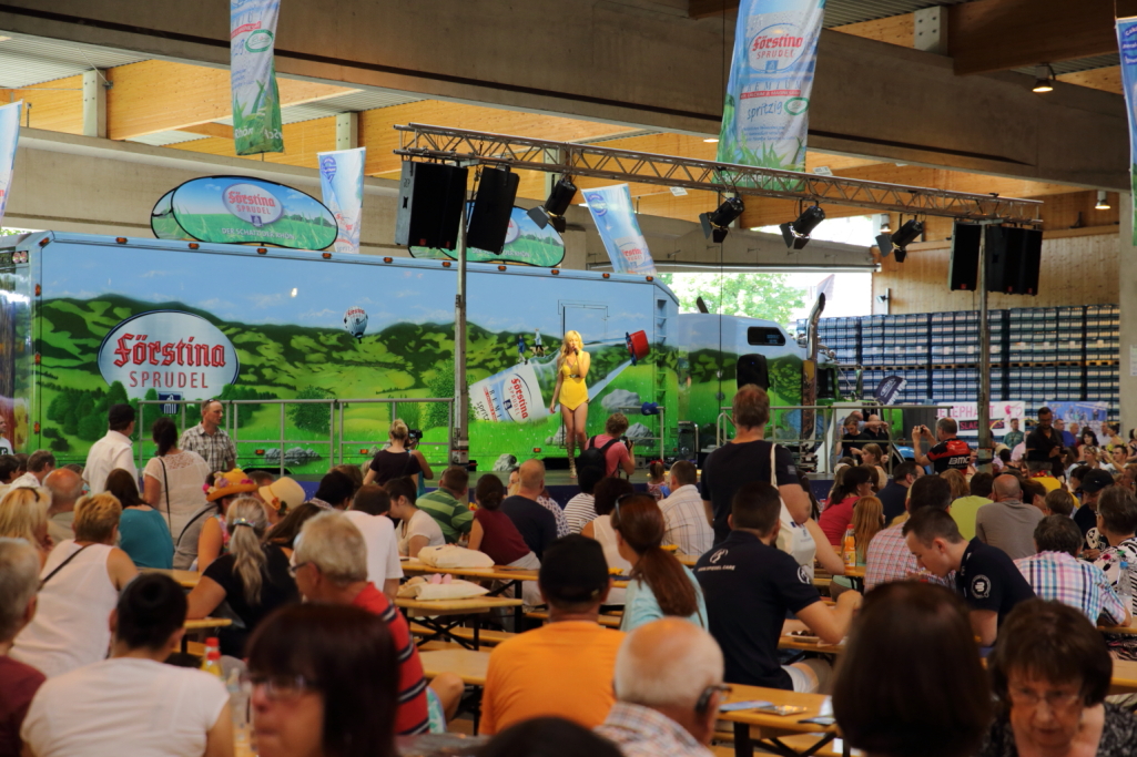 Ob die Sonne strahlt, ob es regnet, stürmt oder schneit – in der riesigen Logistikhalle, die das Team des Mineralbrunnens Förstina einmal im Jahr zum Festgelände umfunktioniert, ist die Stimmung am Brunnenfest immer ungebrochen. Draußen – einer der heißesten Tage des Sommers 2016 – drinnen gute Stimmung: Bereits ab heute Vormittag, 10:30 Uhr, drängte es die Massen ins osthessische Lütter. Eine halbe Stunde später, um 11:00 Uhr, begann dann das gewohnt umfangreiche Rahmenprogramm: Die kleinen Besucher konnten sich in der „Spaßfabrik“ mit vielen Highlights austoben und mit „City Skate“, einem abwechslungsreichen Erlebnisparcours für Kids und Jugendliche, rollend, gleitend oder fahrend, Bewegung neu erleben. In einem eigenen Themenbereich konnten die Gäste in die faszinierende Welt der Mini-Trucks (präsentiert vom Funktionsmodellbauverein Main-Rhön) eintauchen.