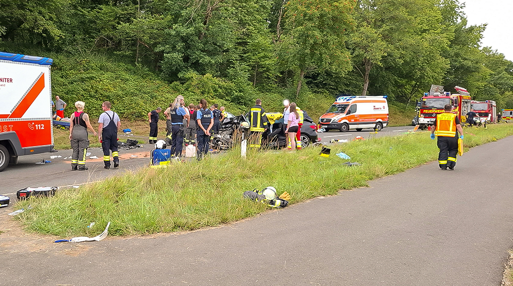 Nach Angaben der Polizei war ein BMW mit zwei erwachsenen Insassen aus Richtung Mücke-Merlau in Fahrtrichtung Nieder-Ohmen unterwegs, als das Fahrzeug aus bislang ungeklärter Ursache auf die Gegenfahrbahn geriet. Dort kam es zur Kollision mit einem entgegenkommenden VW, in dem sich zwei Erwachsene sowie drei Kleinkinder befanden.