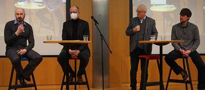 Bezugnehmend des anhaltenden Russland-Ukraine-Konflikts fand am Donnerstag im Fuldaer Bildungsunternehmen „Dr. Jordan“ ein Gespräch mit Schülerinnen und Schülern der gymnasialen Oberstufe sowie Fachoberschule des Bildungsunternehmens mit dem heimischen Wahlkreisabgeordneten für Fulda, die Rhön und den Vogelsberg sowie Vorsitzenden der Arbeitsgruppe für Menschenrechte und Humanitäre Hilfe der CDU/CSU-Bundestagsfraktion Michael Brand MdB statt. Komplettiert wurde das Podium um die Gesprächsteilnehmer Vladimir Schulz und Sergiy Sudzilovskyy. Schulz und Sudzilovskyy stammen beide aus der Ukraine. Vladimir Schulz unterrichtet im Realschulzweig des Bildungsunternehmens Mathematik und Physik und besitzt inzwischen die deutsche Staatsangehörigkeit; Sergiy Sudzilovskyy belegt gerade einen Sprachkurs unter dem Dach des Bildungsunternehmens.
