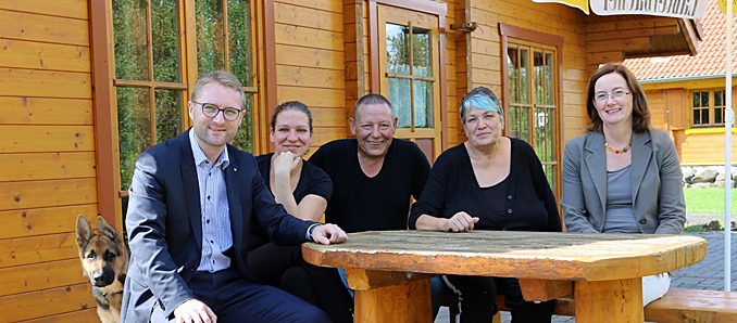 Hochwaldhausen. In Hochwaldhausen gibt es die Gaststätte „Zum Sauwirt“, das Geschenkelädchen „Konfetti“ und die Pension „Grünes Paradies“, alles in unmittelbarer Nachbarschaft der Klinik. Deren Patienten und Besucher machen auch einen gewissen Teil der Kundschaft von Familie Dietrich aus, daneben zählt auch die Dorfjugend wieder vermehrt dazu. Den größeren Teil stellen allerdings in letzter Zeit die Monteure auf Vogelsberger Großbaustellen, die in der Pension von Tochter Diana Dietrich eine Wohnung auf Zeit finden. Alle drei Betriebe liegen in den Händen von Familie Dietrich: Vater Armin ist der Gastwirt, Mutter Christina die Inhaberin von Gaststube und Lädchen. Tochter Diana ist seit einigen Jahren selbstständig mit dem Pensionsbetrieb, zu dem ein Haus mit Zimmern, drei Ferienhäuser aus Blockbohlen und das Übernachten im Wohnwagen gehören. Familie Dietrich hatte Wirtschaftsdezernent Dr. Jens Mischak und Andrea Ortstadt von der Wirtschaftsförderung des Kreises eingeladen, weil sie sich Gedanken darüber macht, wie sie ihre Betriebe attraktiv erhalten kann. Die Themen des Gesprächs reichten von Umbaumaßnahmen im Kleinen bis hin zur Vermarktung der Region Vogelsberg im Großen. Schließlich liegt die Pension an der Bonifatiusroute und bietet Pilgern und Wanderurlaubern eine Übernachtungsmöglichkeit. „Mehr Infrastruktur wäre schon gut“, findet Diana Dietrich, die sich zum Beispiel einen Busverkehr wünscht, der auch außerhalb der Saison des Vulkanexpress fährt. +++