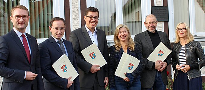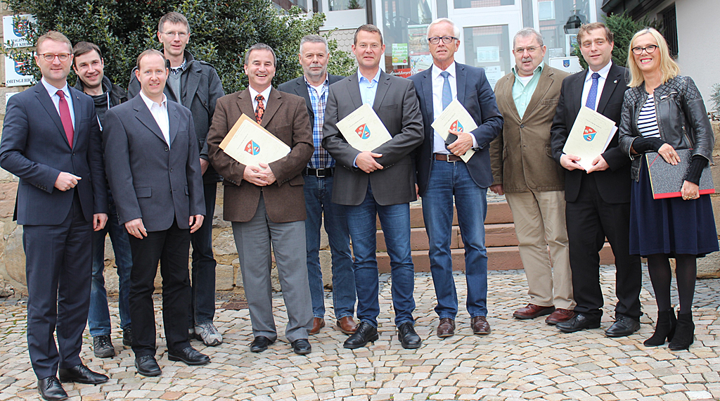 Am Vormittag hatte der Erste Kreisbeigeordnete den Bürgermeistern Heiko Stock (Lautertal), Bernhard Ziegler (Herbstein), Susanne Schaab (Schotten) und Sebastian Stang (Grebenhain) die entsprechenden Bewilligungsbescheide im Rathaus in Hörgenau überreicht.