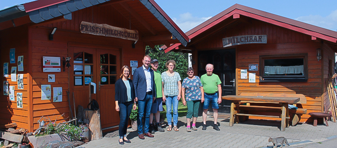 Von Osten in Richtung Grebenhain-Ilbeshausen kommend führt kein Weg an ihm vorbei: der Brückenwiesenhof, den Familie Löffler bewirtschaftet und der seit 1998 den Weg nach Ilbeshausen hinein prägt. Als Wirtschaftsdezernent für die Landwirtschaft im Kreis zuständig, machte sich der Erste Kreisbeigeordnete Dr. Jens Mischak nun bei einem Betriebsbesuch ein Bild vom Familienbetrieb der Löfflers, der in mehreren Bereichen aktiv ist. „Direktvermarktung, Milchkühe, Lohnunternehmen, kommunale Dienstleistungen und nachhaltige Energie? Familienbetriebe, die derart breit aufgestellt sind, sind selten – und zeigen, wie man mit Mut zu Neuem und Geschäftssinn auf die Herausforderungen der Landwirtschaft reagieren kann“, kommentiert Dr. Mischak den Besuch auf dem Brückenwiesenhof.
