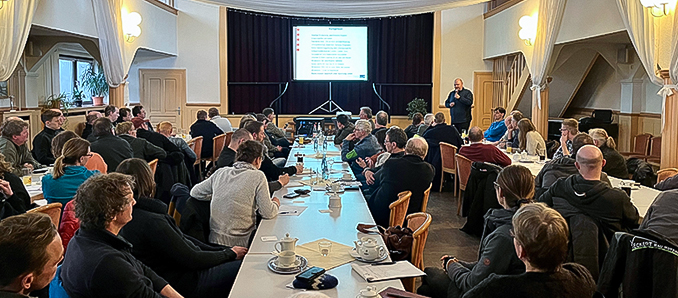 Einen Vortrag zum Thema „Fördermöglichkeiten beim Herdenschutz in Hessen“ hielt Valerie Kihm vom Hessischen Ministerium für Umwelt, Klimaschutz, Landwirtschaft und Verbraucherschutz. Seit Oktober 2021 haben Weidetierbesitzer die Möglichkeit, eine Förderung der Ausgaben für den Herdenschutz zu beantragen. „Dies beinhaltet beispielsweise wolfsabweisende, über den Grundschutz hinausgehende Schutzzäune, wolfsabweisende Einrichtungen, die auf digitaler Technik beruhen oder auch die Anschaffung von Herdenschutzhunde“, führte Expertin Kihm aus. Anspruch auf diese Förderungen hätten Antragssteller, deren Tiere als gefährdet eingestuft werden, weil es beispielsweise bereits einen Wolfsriss innerhalb der Herde oder in der Nähe gegeben hat, oder weil die Weide innerhalb eines Wolfspräventionsgebiet liegt.