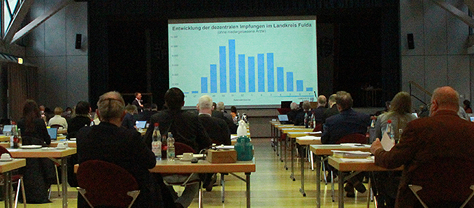 78 der 81 Mitglieder des Fuldaer Kreistags waren am Montag anlässlich ihrer fünften Sitzung in dieser Legislatur erneut im Gemeindezentrum Künzell zusammengekommen. Im Rahmen der Sitzung wurde auch der Haushaltsentwurf zum Beschluss vorgelegt, der mit den Stimmen von CDU und FDP beschlossen wurde. Das man das Klinikum Fulda mit 10 Millionen Euro für die Eigenkapitalstärkung unterstützt, fand im allgemeinen Zuspruch. Ein Strukturgutachten für das Klinikum hätten sich allerdings SPD, Grüne und die CWE gewünscht. Grüne, SPD und Linke bemängelten, das zu wenig in die Schaffung neuer Wohnungen und Kilmaschutz investiert werde.