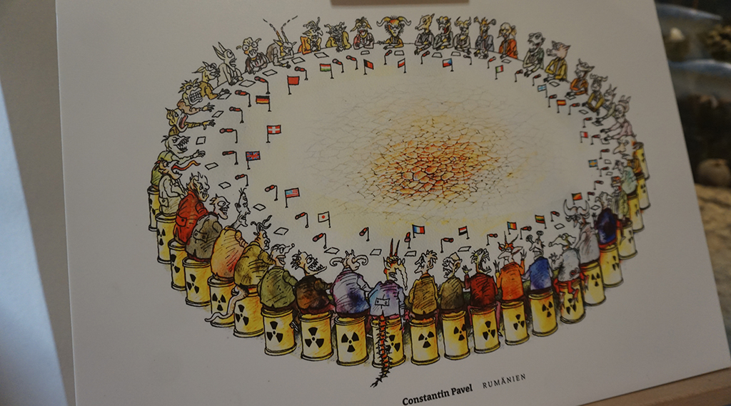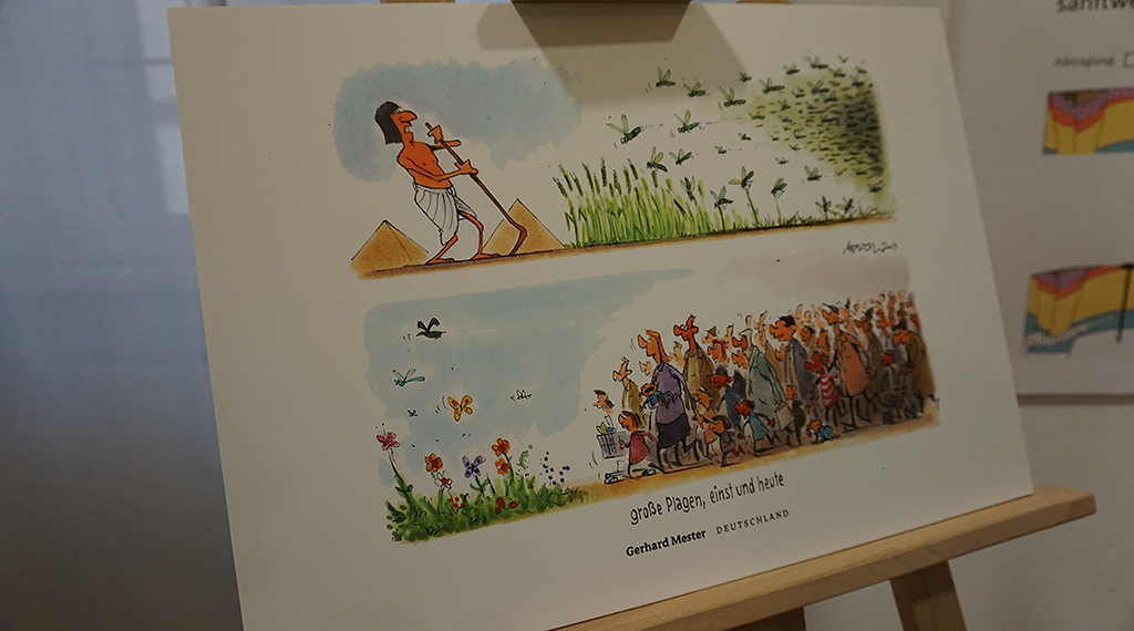 Was bedeutet uns die Schöpfung und welche Verantwortung tragen wir für Sie? Diese Fragen haben das Osteuropahilfswerk Renovabis und das Erzbistum Bamberg im vergangenen Jahr europäischen Künstlerinnen und Künstlern aus Ost und West gestellt. Herausgekommen ist eine bunte und vielfältige Antwort: die Karikaturen-Sammlung „Mit Volldampf in die Katastrophe?“. Die Zeichnungen belegen, wie unterschiedlich die wirtschaftlichen Realitäten und gesellschaftlichen Prägungen in den Ländern sind und wie verschieden ihre Wahrnehmungen und Ausdrucksformen. Dennoch eint alle die Sorge um das „gemeinsame Haus“, wie Papst Franziskus die Erde in seiner Enzyklika „Laudato sí“ nennt. Die Schattenseiten des Tourismus sind genauso Thema wie die Vermüllung der Weltmeere und die Gefahren der Atomenergie. Unter den Karikaturisten sind namhafte Zeichner wie Horst Haitzinger und Thomas Plassmann. 40 Zeichnungen stammen von Künstlerinnen und Künstlern aus Osteuropa: Die Ausstellungsmacher möchten ganz besonders dazu anregen, die Sicht unserer östlichen Nachbarn wahrzunehmen.