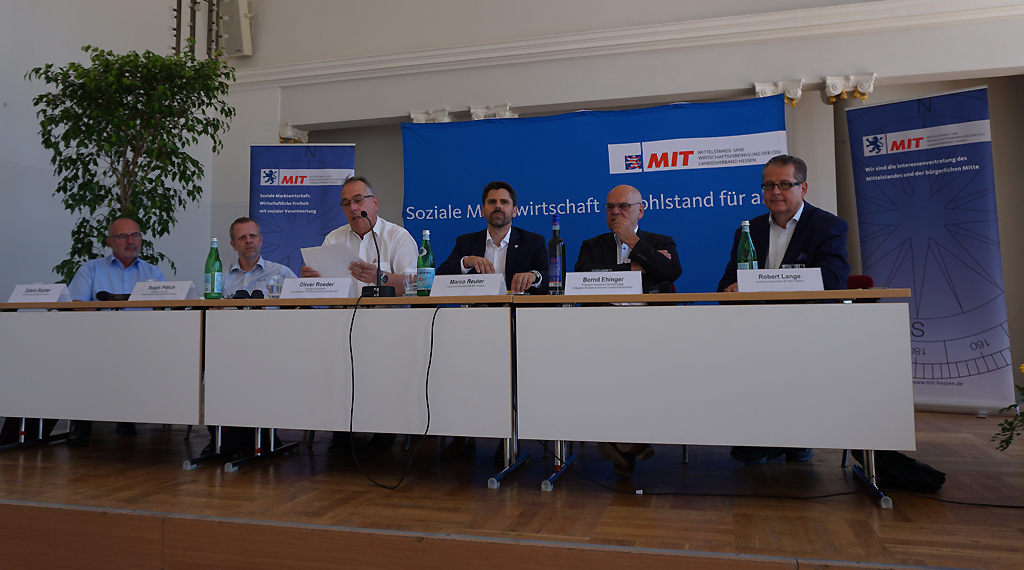 67 Delegierte der Mittelstands- und Wirtschaftsvereinigung der CDU Hessen waren gestern anlässlich ihres 40. Landesmittelstandstages in der Orangerie Darmstadt zusammengekommen. Auf dem Landesmittelstandstag wurde Landesvorsitzender Marco Reuter einstimmig in seinem Amt bestätigt. Auch waren Jürgen Diener, Christoph Fay, Elke Jesinghausen, Volker Rode sowie Dr. Reinhard Völker als Stellvertretende Vorsitzende mehrheitlich in ihrem Amt bestätigt worden. Claus Ullrich und Oliver Roeder fungieren weiterhin als Mitglieder des Präsidiums, das Amt des Landesschatzmeisters bekleidet wie bisher Robert Lange. Alle Gewählten nahmen die Wahl an und bedankten sich für das ihnen entgegengebrachte Vertrauen.