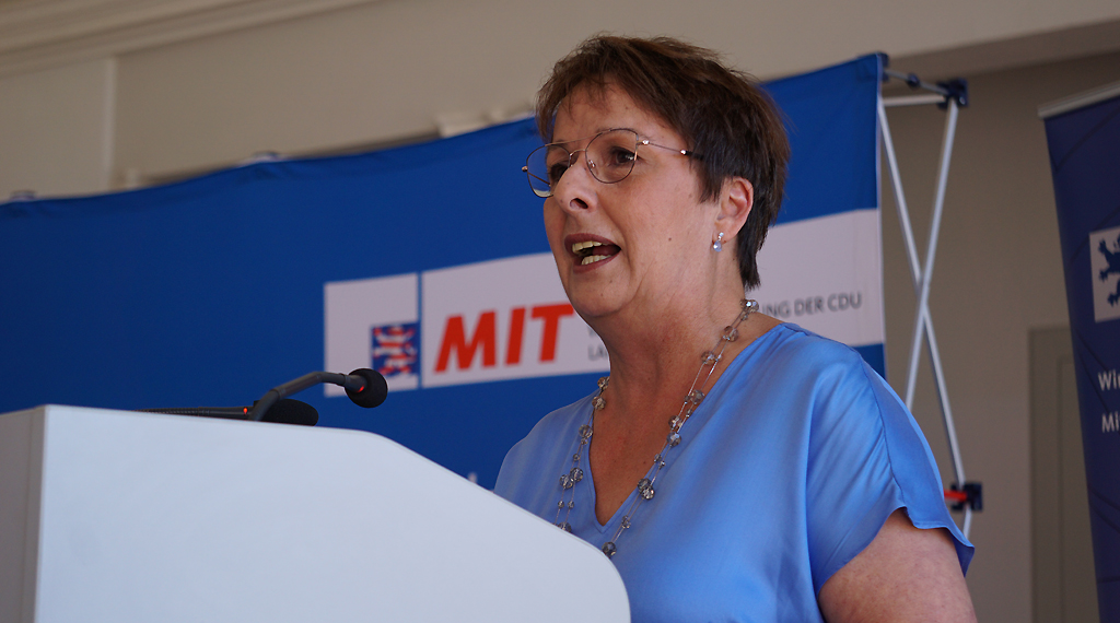 Zudem war auf dem gestrigen Landesmittelstandstag die Stellvertretende Bundesvorsitzende der MIT CDU / CSU, Patricia Lips vertreten. Lips überbrachte die Grüße des Vorsitzenden der Mittelstands- und Wirtschaftsvereinigung CDU / CSU, Dr. Carsten Linnemann und erinnerte an den Bundesmittelstandstag, der am 27.- und 28. September in Kassel stattfindet. Thema auf dem Bundesmittelstandstag wird die Erstellung eines Maßnahmenkataloges unter dem Titel „Hessen: Mittelstandsland Nummer 1 in Europa“ sein. „Vor uns liegt ganz sicher ein spannendes, zweites Halbjahr. Wir haben gestern formal die letzte Sitzungswoche gehabt im Deutschen Bundesrat, jetzt geht es erst einmal in die Sommerpause; ich glaube, es gibt eine ganze Menge Themen – und damit meine ich nicht nur positive -, die das Sommerloch füllen könnten oder können. Am 01. September geht es dann gleich los mit den Wahlen in Sachsen und Brandenburg, im Oktober in Thüringen und auf Bundesebene ist der Haushaltsplan eingebracht. Die Haushaltsberatungen finden statt unter der Decke von weniger Geld, als das in der Vergangenheit der Fall gewesen ist. Aber nicht erst seit jetzt, sondern auch bisher geplant, geht inzwischen in diesem Land jeder zweite Euro in den Sozialen Bereich; das ist nicht allein der SPD geschuldet, da müssen wir uns teilweise auch an die eigene Nase fassen. Aber wenn es um weniger Geld geht – auch in der Partei – müssen die Weichen natürlich jetzt auch verstärkt gestellt werden, dass ein wirtschaftliches Wachstum generiert wird, weil die Parteien können das auf Dauer nicht leisten. Jeder Euro, der dort hineingegeben wird, kriegen wir nie mehr eingesammelt. Auch das zeigt uns, es kommt mehr denn je auf die MIT an!“, so die stellvertretende Bundesvorsitzende der MIT CDU / CSU, Patricia Lips.
