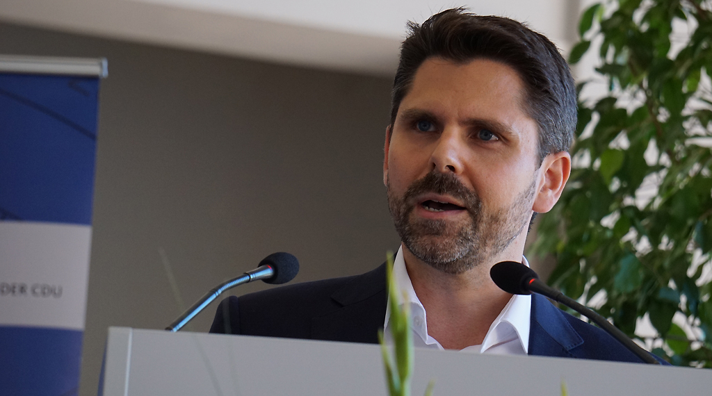 „Wir sind in der heißen Phase“, mit diesen Worten eröffnete Landesvorsitzender Marco Reuter den 40. Landesmittelstandstag in der Orangerie Darmstadt. „Damit meine ich die Zukunft unserer Mutterpartei, die CDU. Der letzte Landesmittelstandstag liegt bereits eine Weile zurück. Der letzte Landesmittelstandstag war in 2017 - 2017 lag die CDU Deutschlands in den Umfragewerten bei etwa 40 Prozent; dieser stand gestern, also zwei Jahre später, bei 26 Prozent, die zweitstärkste Kraft hinter uns, die Grünen, mit 25 Prozent. Dies zeigt uns, dass wir tatsächlich in der heißen Phase angekommen sind.