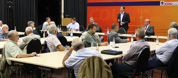 Nicht weniger bedeutend als die Bundestagswahl 2021 seien nach dem Alsfelder Bürgermeister die Kommunalwahlen in Hessen im nächsten Frühjahr, bei der die Kreistage, Stadt- und Gemeindeparlamente sowie Ortsbeiräte gewählt werden. In diesem Kontext stellte Bürgermeister Paule die Frage in den Raum: „Wie bringen wir als Volkspartei genau diese Vielfalt der Prägungen und der wichtigen Themen rüber?“ In diesem Zusammenhang formulierte Bürgermeister Stephan Paule acht an der Zahl seiner Meinung nach wichtige Themenüberschriften, die Gegenstand des Kommunalwahlkampfes werden sollen. Zu diesen „kommunalpolitischen Leitlinien“, zählten beispielsweise die wirtschaftliche Entwicklung, die verkehrliche und soziale Infrastruktur oder der Tourismus. Ein wichtiges Thema sei auch, dass die Krankenhausfinanzierung für den ländlichen Raum auf neue Beine gestellt werden müsse und dass die Interessen der Jugend stärker berücksichtigt werden. Das gehöre auch „zur gelebten Solidarität“. Weiter nannte Bürgermeister Paule die Themen „Finanzen“, „Innere Sicherheit“ und „Ehrenamt“. Möglicherweise stellen wir fest, dass hinter diesen Themen noch so viel mehr liegt als das wir ihnen im Wahlkampf gerecht werden können. „Wichtig ist, dass wir als CDU politische Antworten haben, auch in anderer Auswirkung auf der Ebene der Bundesrepublik Deutschland.“