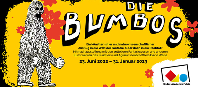 Die spannende Mitmachausstellung mit den zotteligen Fantasiewesen und anderen Kunstwerken des Künstlers und Agrarwissenschaftlers David Weiss wurde bereits Mitte Juni eröffnet und ist noch bis zum 31. Januar 2023 in der Kinder-Akademie Fulda zu sehen. Die Bumbos leben mitten unter uns. Es handelt sich um zottelige Fantasiewesen, die Blumen essen und mit ihren Ausscheidungen zur Biodiversität in unserer Welt beitragen. Sie leben ein Leben, das wir Menschen uns in vielerlei Hinsicht als Vorbild nehmen könnten und sollten: gemeinschaftlich anpacken, auf die Natur achten und sich auf umsichtige und respektvolle Art mit unserer Welt beschäftigen. Durch die Einführung in die fiktive Welt der Bumbos werden wesentliche Aspekte aus der Biologie und den Agrarwissenschaften vermittelt. Auch wenn die Bumbos fiktiv sind, wird den Gästen der Ausstellung ein intensives Bewusstsein für die Natur und deren Erhalt mit auf den Weg gegeben. +++ pm