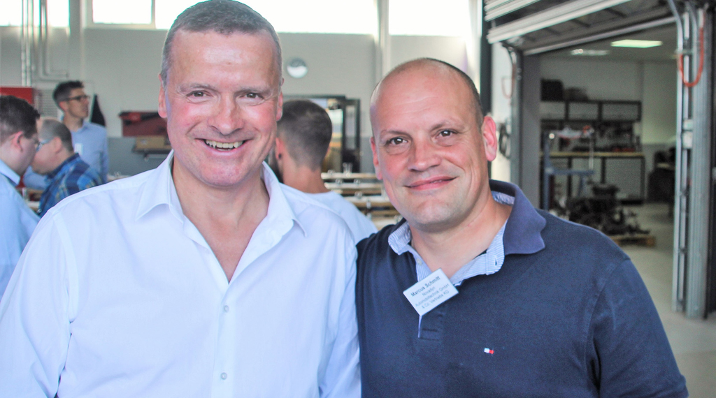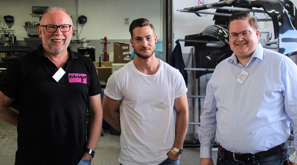 Das ist auch das Credo von Markus Schmitt, Gastgeber dieses Abends und Geschäftsführer der Novadyn Automobiltechnik GmbH. Novadyn ist einer von lediglich 40 Betrieben in Deutschland, die in allen Bereichen des Kfz-Wesens zertifiziert sind. In der Weichselstraße werden Pkw, Nutzfahrzeuge und Caravans gewartet und instandgesetzt, lackiert, vermessen, ausgebeult. Alleinstellungsmerkmal des Unternehmens ist die Oldtimer-Restauration, die Kunden aus ganz Deutschland nach Fulda lockt. Die BVMW-Gäste konnten sich jedenfalls an den Schmuckstücken auf dem Firmengelände nicht sattsehen. Schmitt legt großen Wert auf gute Aus- und Weiterbildung sowie auf ein gutes Miteinander. „Das Betriebsklima ist Chefsache“, sagte Schmitt, der immer wieder von den Mitbewerbern dafür bewundert wird, welch hoch qualifizierte Auszubildende und Mitarbeiter der Novadyn GmbH zur Verfügung stehen.