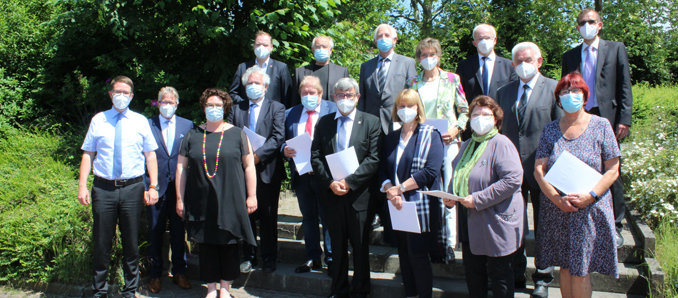 Der Kreisausschuss in seiner neuen Besetzung, hinten von links: Christian Litzinger, Günther Kauder, Johannes Sperzel, Monika Kühn-Bousonville, Heinz Breitenbach, Hugo Klein und Kreistagsvorsitzender Carsten Ullrich; vorne von links: Landrat Thorsten Stolz, Kreisbeigeordneter Winfried Ottmann, Erste Kreisbeigeordnete Susanne Simmler, Dr. Ralf-Rainer Piesold, Dr. Hans Katzer, Uwe Häuser, Maja Weise-Georg, Angelika Gunkel und Iris Schröder. Nicht auf dem Bild: Bettina Müller.