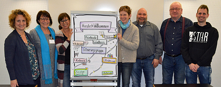 Direkt im Anschluss an die Auftaktveranstaltung waren acht Personen dem Aufruf gefolgt: Marion Buley (Spessart Regional), Jürgen Lauber (Gelnhausen), Stephan Loquai (Rodenbach), Renate Tonecker-Bös (Erlensee), Roland Tzschietzschker (Brachttal), Anja Zeller (Hanau), Ilona Frei (IHK Hanau-Gelnhausen-Schlüchtern) und Bixi Scheffler (Gelnhausen). Künftig wollen auch Katja Adams (Nidderau) und Christine Empter (Rodenbach) die Gruppe verstärken. Koordinatorin für das Projekt des Kreises und Sprecherin der Gruppe ist Alice Engel-Kanani. Einige Mitglieder der Steuerungsgruppe verfügen bereits über Erfahrungen mit den Vorbereitungen zur „Fairtrade-Town“ und den entsprechenden Anforderungen. Der Verein „TransFair“ nennt fünf notwendige Kriterien, die das Engagement für den fairen Handel auf vielen Ebenen widerspiegeln. Mit dem Beschluss des Kreistages im April 2018 haben die Abgeordneten die erste Auflage erfüllt und den Startschuss gegeben. Zudem verwendet die Kreisverwaltung in vielen Bereichen schon mindestens zwei Produkte aus fairem Handel.