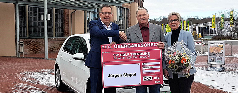Aus Tausenden von Teilnehmern ist er gezogen worden ­- Jürgen Sippel aus Bad Hersfeld hat beim Freundschaftskarten-Gewinnspiel bei Möbel Buhl in Fulda einen VW Golf Trendline gewonnen. Dass die Teilnahme an einem Gewinnspiel auch zum Hauptgewinn führen kann, ist eine Erfahrung, die Jürgen Sippel aus Bad Hersfeld gerade macht. Im Dezember 2018 nahm der Pensionär am Freundschaftskarten-Inhaber-Gewinnspiel bei Möbel Buhl in Fulda teil. Ans Gewinnen dachte er dabei jedoch nie.