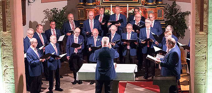 Eröffnet wurde der Abend vom Projektchor „Wellermänner“, der mit maritimen Liedern wie „Whiskey in the Jar“ und „The Wellerman“ vor der Kirche sofort für heitere Stimmung sorgte. Die mitreißenden Seemannslieder luden zum Mitsingen und Mitwippen ein und bildeten einen gelungenen Auftakt für den weiteren Verlauf des Abends. Anschließend verlagerte sich das Geschehen in die atmosphärisch beleuchtete Kirche, wo der MGV Loreley Engelhelms unter der musikalischen Leitung von Gregor Botzet sein Können eindrucksvoll unter Beweis stellte. Mit gefühlvollen Stücken wie „Warum bist Du so ferne“ und dem rätoromanischen „La sera sper il lag“, das die friedvolle Ruhe der Nacht besingt, schufen die Sänger eine Gänsehaut-Atmosphäre. Thematisch widmete sich das Repertoire dem Übergang vom Tag zur Nacht – mit sowohl traditionellen als auch poetischen Kompositionen.
