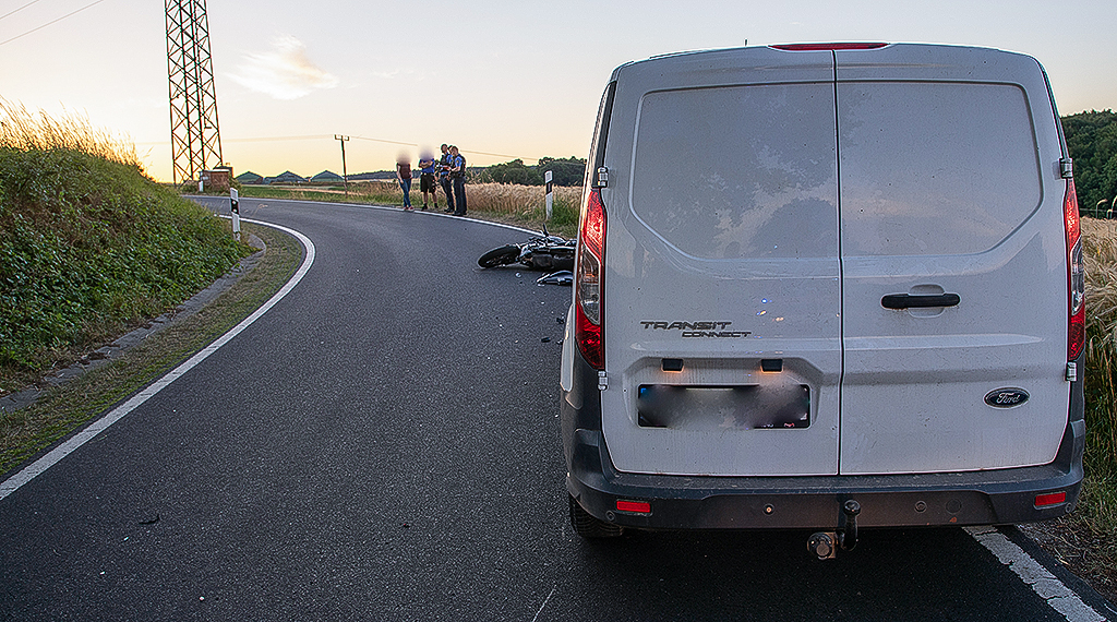 Zu einem schweren Unfall kam es am Mittwochabend gegen 20.40 Uhr auf der Straße zwischen Großenlüder und Lütterz. Eine 16-jährige Kradfahrerin wurde dabei schwer verletzt. Nach ersten Informationen kam die aus der Gemeinde Eichenzell stammende Motorradfahrerin in einer Rechtskurve auf die Gegenfahrbahn und stieß dort frontal mit einem Ford zusammen, der von einem 28-Jährigen aus Herbstein gesteuert wurde. Die 16-Jährige flog über die Motorhaube und wurde schwer verletzt in ein Krankenhaus gebracht. Der Sachschaden beläuft sich nach ersten Schätzungen auf rund 10.000 Euro. Vor Ort waren Rettungsdienst, Notarzt, Polizei sowie die Feuerwehren Großenlüder und Bimbach. +++