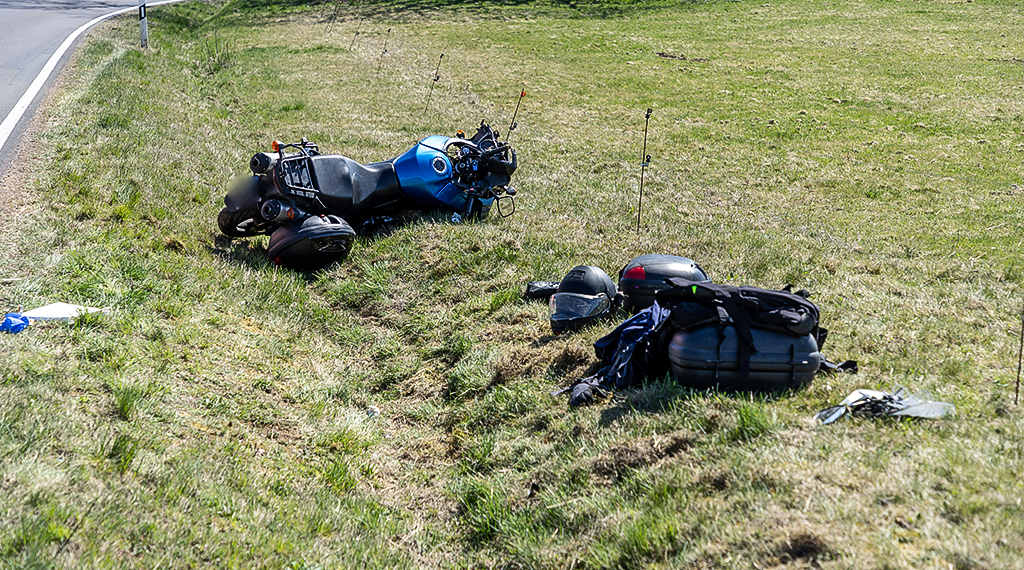 Am Freitagmittag gab es einen schlimmen Unfall auf der Landstraße von Ilbeshausen nach Grebenhain. Ein Motorradfahrer, 50 Jahre alt und aus dem Kreis Gießen, verlor in einer Kurve die Kontrolle. Er stürzte und überschlug sich.