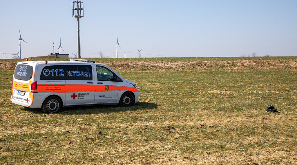 Gegen 12.00 Uhr ereignete sich ein schwerer Unfall auf L3292 zwischen Weidenau und Reinhards. In einer Kurve kam ein 38-Jähriger aus der Gemeinde Neuhof vermutlich durch einen Fahrfehler von der Fahrbahn ab und schoss mit seinem Motorrad in eine Wiese. Der Krad-Fahrer überschlug sich und verletzte sich schwer. Er wurde mit dem Rettungshubschrauber Christoph Gießen nach Fulda in die Klinik gebracht, schon deshalb, weil der 38-Jährige mit dem Kopf aufgekommen sei. Über die Schadenshöhe konnte die Polizei noch keine Angaben machen.