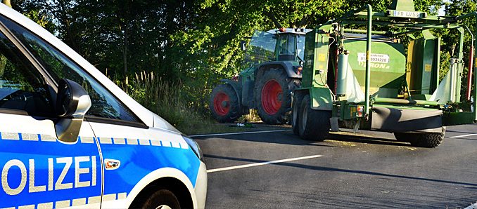 Neuhof. Auf der Kreisstraße aus Richtung Neuhof kommend war ein Pkw-Fahrer, ein Landwirt mit seinem Trecker-Gespann und ein Motorradfahrer unterwegs in Richtung Flieden unterwegs. Nach einer Senke und auf übersichtlicher Strecke überholte der Kradfahrer erst den Pkw und wollte im gleichen Zug auch noch das Trecker-Gespann überholen. Hierbei übersah er, dass der Trecker nach links auf eine dortige Wiese abbiegen wollte und rutschte gegen den Anhänger. Bei dem Zusammenstoß wurde der Kradfahrer schwer verletzt und musste ins Krankenhaus gebracht werden. Das Krad wurde abgeschleppt. Laut Polizei waren Rettungswagen und Notarzt vor Ort. Über den Sachschaden liegen keine Angaben vor. +++ fuldainfo
