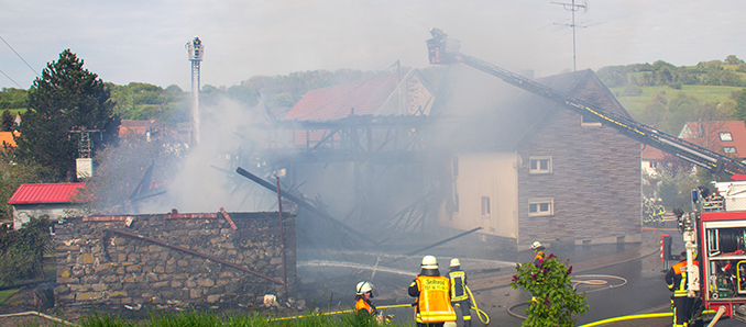 Mücke: Scheune und mehrere Wohnhäuser brennen vollkommen nieder