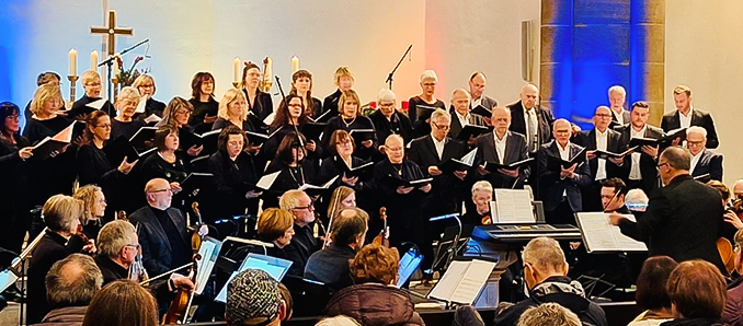 Die „Singphonie“ Hofbieber selbst bot ein breites Repertoire in vier Sprachen und unterschiedlichen Stilrichtungen – von klassisch bis modern. Das siebenstimmige „Halleluja“, Bachs „Wach auf, mein Herz“ gemeinsam mit den Bläsern sowie das hebräische „Ose Shalom“ mit kleinem Orchester stellten das stimmliche Können des Chores eindrucksvoll heraus. Abgerundet wurde der Auftritt durch zwei Werke mit Orchesterbegleitung: das „Ave Maria“ von Caccini und Mendelssohn-Bartholdys „Verleih uns Frieden gnädiglich“.