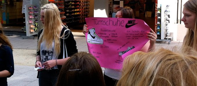 Fulda. „Achtet ihr auf nachhaltigen Konsum?“ „Was ist Fairer Handel?“ „Wisst ihr, was alles in eurem Handy steckt?“ Mit diesen Fragen befassten sich über einhundert Schüler der Eduard-Stieler-Schule im Rahmen der Projekttage zum Thema „Nachhaltigkeit“, die vom 21. Bis zum 23. Juli durchgeführt wurden. Dazu positionierten sich die Schülerinnen und Schüler am Mittwoch mit ausgewählten Themengebieten an verschiedenen Orten in der Fuldaer Innenstadt. Dort präsentierten sie ihre selbst ausgearbeiteten nachhaltigkeitsorientierten Vorträge, welche Themen wie „Kinderarbeit in der Textilproduktion“ oder „Finanziert mein Handy Bürgerkriege?“ aufgriffen. Zuvor hatten die Schülerinnen und Schüler der Berufsfachschule zwei Tage Zeit, um mit Unterstützung von Lehrkräften und Schülern der Weltladen AG ihre Themen zu erarbeiten. Die Vorträge stießen auf großes Interesse bei den Zuhörern, zu denen neben Schülern der eigenen Schule auch zahlreiche interessierte Passanten zählten. +++ fuldainfo