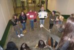 Unter der Leitung von Christian Quanz und Martin Klering präsentierten etwa 70 Schülerinnen und Schüler bei nasskaltem Wetter ihre Ergebnisse in der Fuldaer Innenstadt vor diversen Läden, um so den Bezug ihres eigenen Konsums zu verdeutlichen. Missstände in Menschenrechten, unübersichtliche Zuständigkeiten sowie Korruption in Entwicklungsländern ermöglichen namenhaften Großkonzernen eine günstige Produktion. Von dieser profitieren wiederum wir - in den Industrieländern - durch günstige Preise. Zu den Folgen für einen großen Teil der Bevölkerung zählen Armut, Konflikte um Rohstoffe und Flucht. Aufgeschreckt durch die hohen Todeszahlen in asiatischen Textilfabriken oder die Misshandlung von Kindern bei der Kakaoernte auf afrikanischen Plantagen, zeigten die Schüler ernste Betroffenheit.