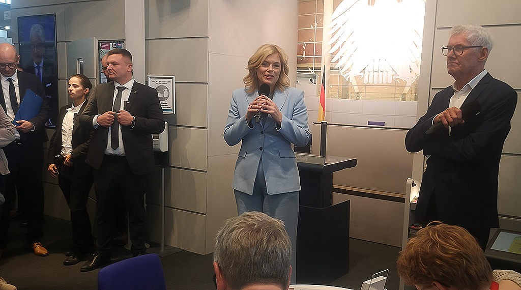 Eine unerwartete Überraschung bot sich beim Rundgang über das Messegelände: Am Stand des Deutschen Bundestags herrschte reger Betrieb, denn Bundestagspräsidentin Julia Klöckner stattete der Buchmesse einen Besuch ab. Ihr Auftritt am Stand des Bundestags war Teil ihrer offiziellen Aufgaben.