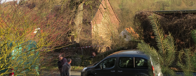 Leider ist sie durch die starken Sturmereignisse der letzten Tage komplett längs am Stamm aufgerissen. Seit Freitag ist das Gelände rund um das Naturdenkmal weiträumig abgesperrt, um Personenschäden bei einem möglichen Auseinanderbrechen zu verhindern. Das Betreten des Geländes ist verboten. Aus Verkehrssicherungsgründen ist eine sofortige Maßnahme erforderlich, sodass sich am Montag der Kirchenvorstand auf Wunsch der Unteren Naturschutzbehörde zu einem Beratungstermin vor Ort an dem alten Baum getroffen hat.
