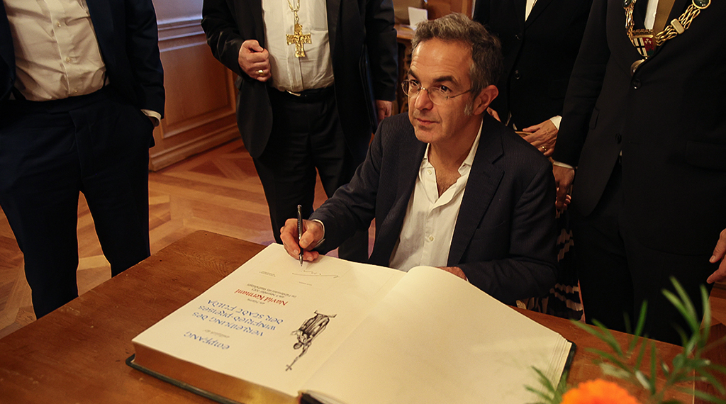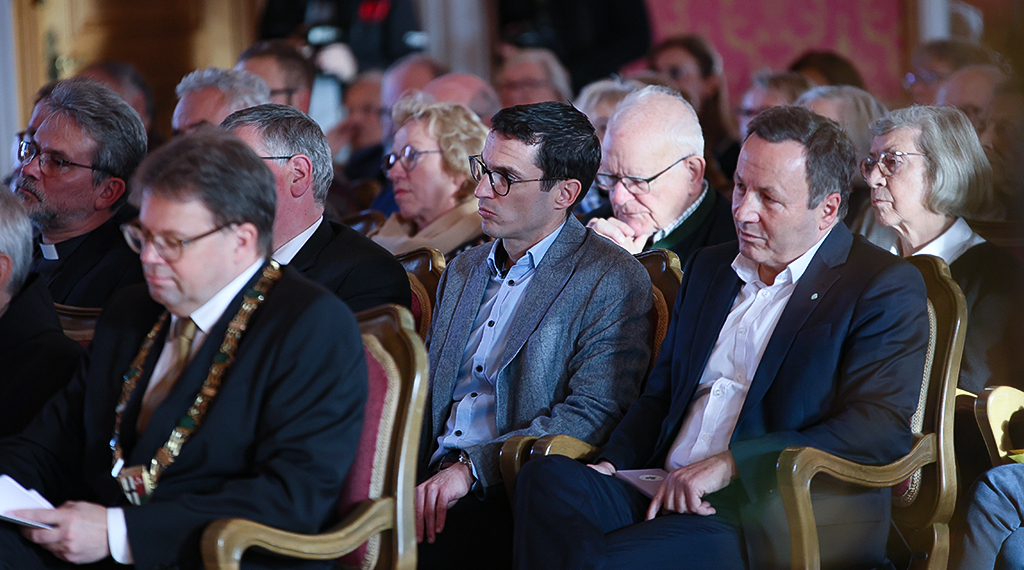 Der deutsch-iranische Schriftsteller Navid Kermani hat am Sonntag den mit 10.000 Euro dotierten Winfriedpreis der Stadt Fulda erhalten. Er wurde damit für seine Verdienste um die Völkerverständigung geehrt. Kermani hat sich in bemerkenswerter Weise für den Dialog zwischen Religionen und Kulturen eingesetzt, hieß es in der Begründung der Preisjury. Der Autor ist in Siegen (Nordrhein-Westfalen) aufgewachsen, seine Familie stammt aus dem Iran. Oberbürgermeister Heiko Wingenfeld begrüßte die Gäste im Fürstensaal des Fuldaer Stadtschloss. Besondere Grüße galten den anwesenden Ex-Bürgermeister von Fulda: Dr. Wolfgang Hamberger, Dr. Alois Riehl und Gerhard Möller. Weiter waren der CDU Bundestagsabgeordnete Michael Brand und Hochschulpräsident Karim Khakzar anwesend.