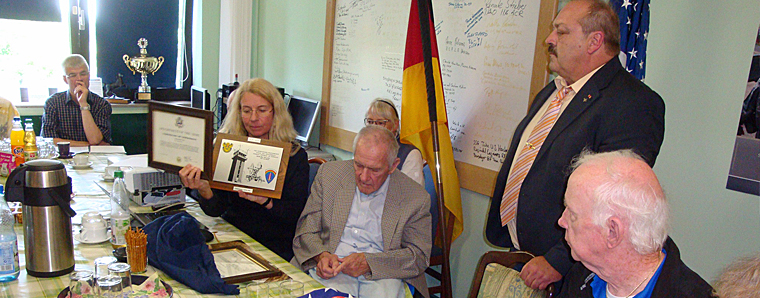Zum Abschluss der Veranstaltung überreichte Helmut Dette die letzte Flagge der in Fulda-Sickels stationierten 4. Schwadron „Thunderhorse“ mit Originalunterschrift des damals kommandierenden Colonel Noice, datiert am 14. Januar 1994, 13.00 Uhr an Winfried Jäger. „ein weiteres Stück Fuldaer Geschichte, dass dadurch wieder zurück gekommen ist und die Freundschaft zwischen Amerikanern und Deutschen in der Region Fulda dokumentiert und für die Zukunft erhält. Wir hatten nicht erwartet, dass es nach so langer Zeit noch so viel Interessierte gibt und wir denken daran diese Vortragsreihe im kommenden Jahr im Bereich des 8.August fortzuführen, so Jäger. +++ fuldainfo | pm